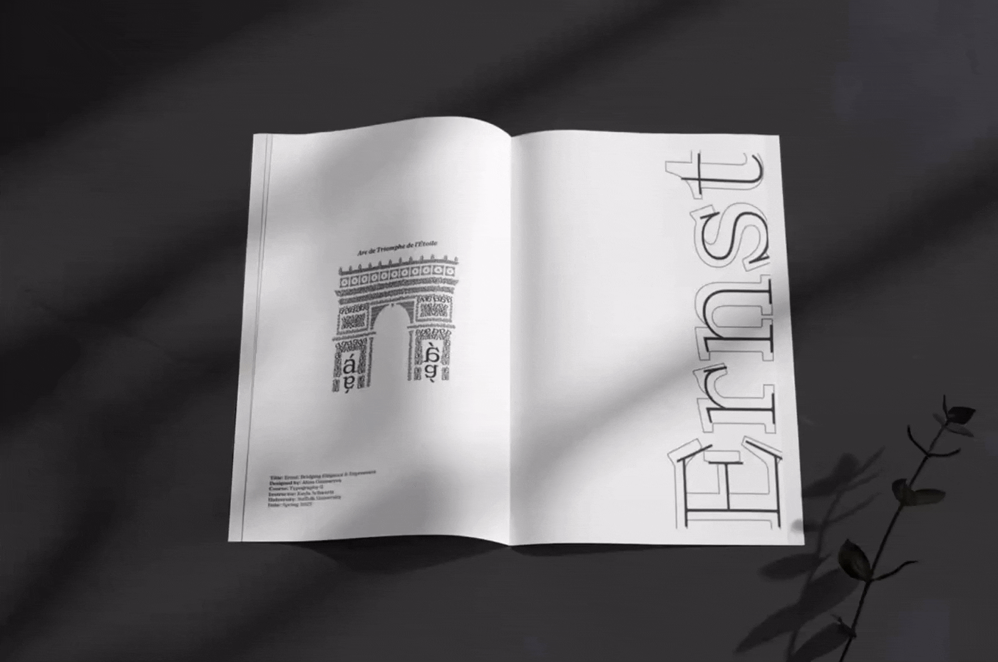 A typographic exploration of the Ernst typeface through a contemporary editorial lens, focusing on hierarchy, contrast, and rhythm across structured page layouts.